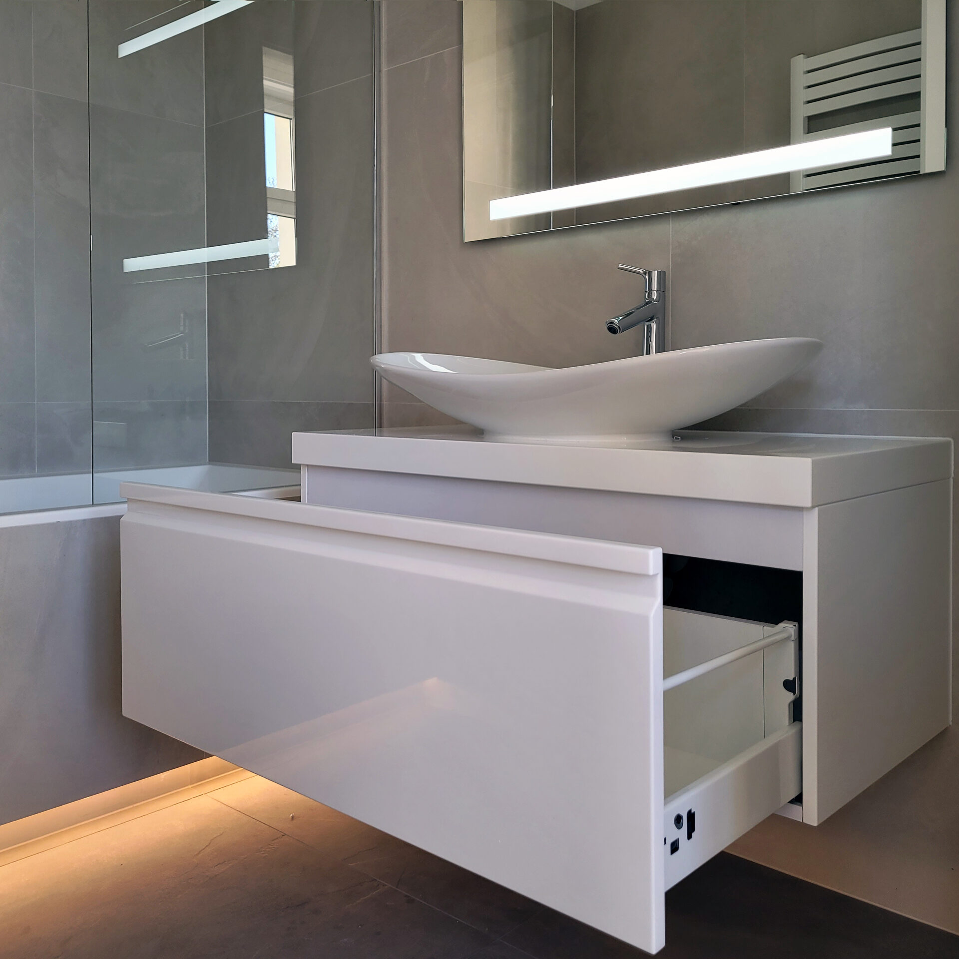 Lassen Sie sich mit einem individuell geplanten und gefertigten Waschtisch oder Schrank von unseren Interieur-Designern inspirieren.